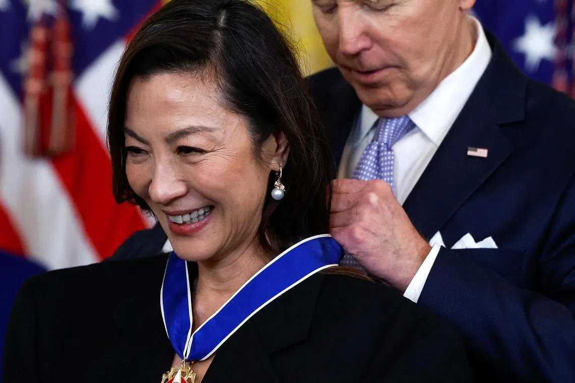 Dalam penyampaian medal kepada beliau pada 3 Mei, Encik Biden menyatakan bahawa selama beberapa dekad, Yeoh telah “menghapuskan stereotaip dan mengatasi halangan dalam industri untuk memperkaya dan meningkatkan budaya Amerika.”