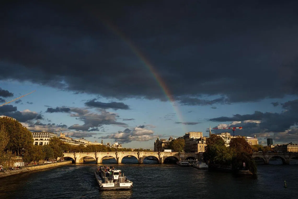 INDAH: Sinaran pelangi di Sungai Seine berlatarkan jambatan The Pont Neuf di Paris (Gambar hiasan) - AFP