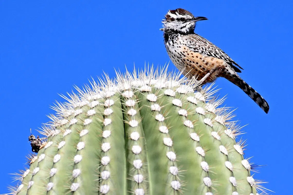 Seekor unggas hinggap di atas pohon berduri (gambar hiasan) - Foto AFP