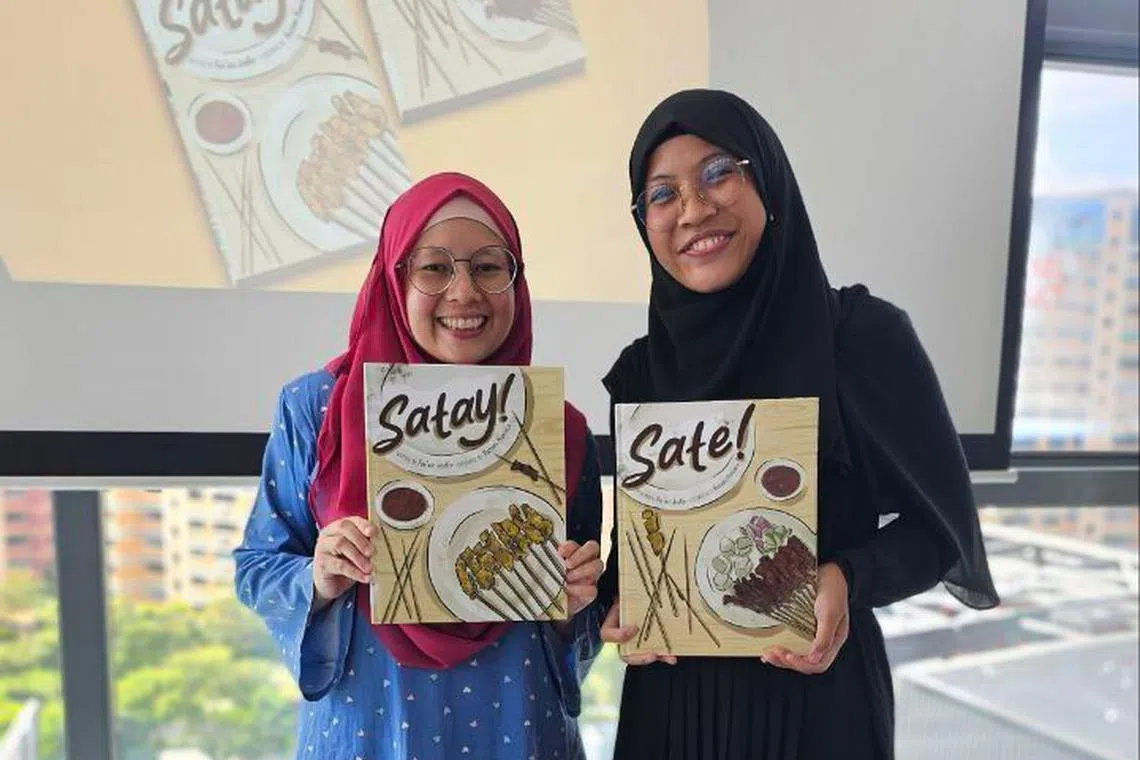 Pendidik yang juga penulis tempatan, Cik Far’ain Jaafar (kiri), bersama pengilustrasi, Cik Hazami Hamidon (kanan), menghasilkan buku kanak-kanak mengenai makanan bersejarah Singapura, ‘Sate!’ - Foto ihsan FAR’AIN JAAFAR