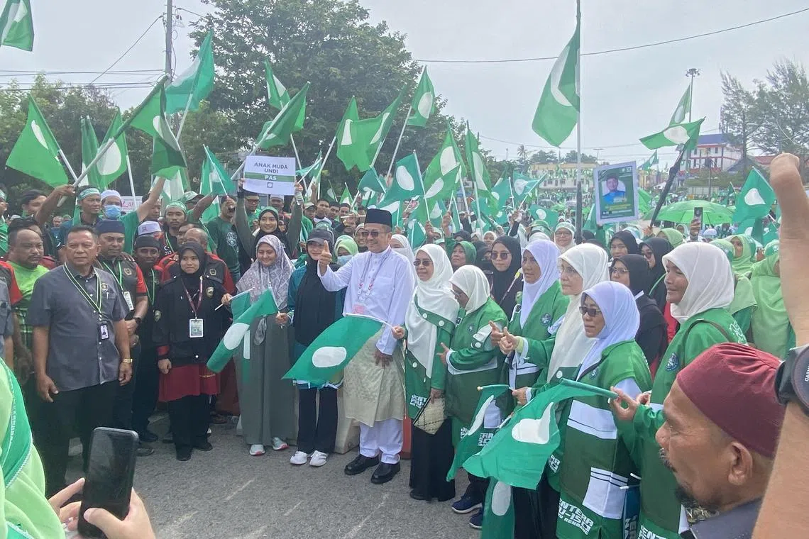 Pada Sabtu, wartawan sekali lagi melihat ribuan penyokong PN-PAS meraikan Menteri Besar sementara Terengganu, Datuk Seri Dr Ahmad Samsuri Mokhtar, semasa menyerahkan borang penamaan calon bagi Dewan Undangan Negeri (DUN) Ru Rendang yang ditandinginya di Pusat Penamaan Calon di Pejabat Daerah dan Tanah Marang.