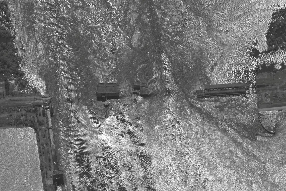 Empangan Kakhovka terletak di barisan depan konflik dan menyediakan bekalan air sejuk kepada loji nuklear terbesar di Eropah di wilayah Zaporizhzhia.