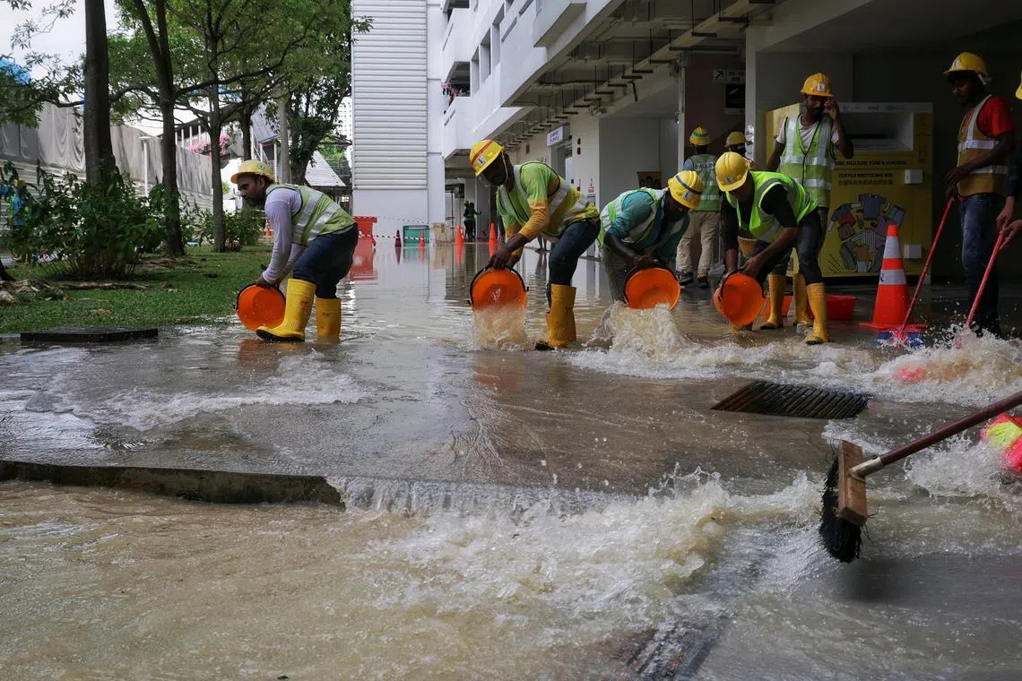 Tiada hujan, tiada ribut tiba-tiba, sebahagian estet perumahan Marine Parade ditenggelami air setinggi buku lali pada 4 Oktober.