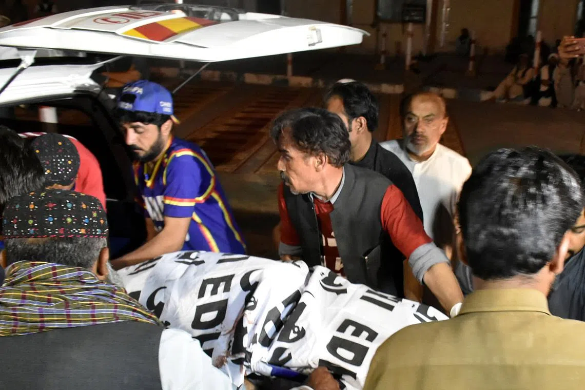 DAPATKAN RAWATAN: Orang ramai dan pegawai perubatan membawa mayat keluarga penganut Kristian yang dibunuh lelaki bersenjata di Quetta, Pakistan - Foto REUTERS -