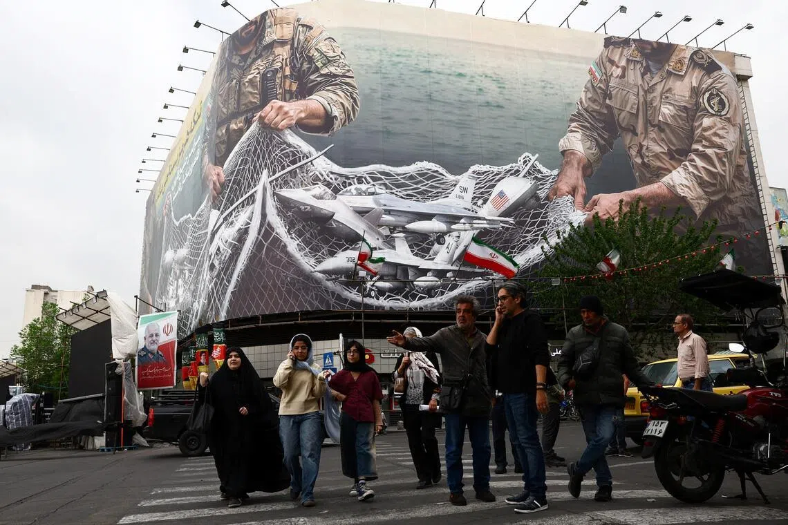 Orang ramai berjalan berhampiran papan iklan anti-Amerika Syarikat di Teheran, Iran, pada 20 April 2026, ketika gencatan senjata antara kedua-dua negara masih berkuat kuasa di tengah ketegangan berkaitan laluan strategik Selat Hormuz. - Foto REUTERS
