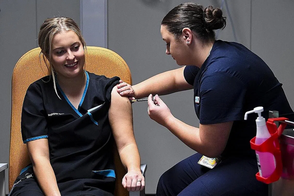 Program berita televisyen pagi menunjukkan beberapa suntikan pertama diberi kepada kakitangan perubatan dan kuarantin di Melbourne dan Sydney, sehari selepas Perdana Menteri Scott Morrison menerima suntikannya dalam acara 'pembuka tirai' yang bertujuan meyakinkan warga Australia bahawa vaksin itu selamat.