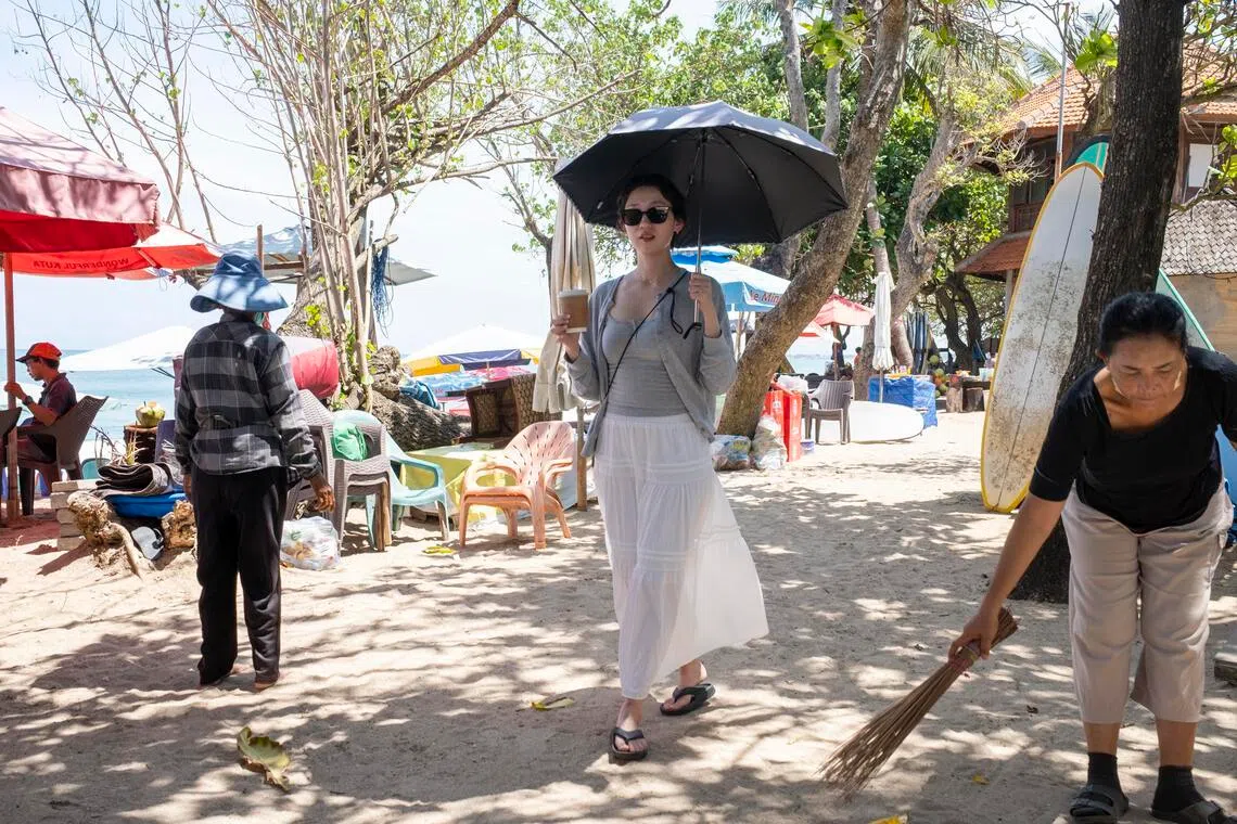 Pelancong meluangkan masa di sebuah pantai di Kuta, Bali, Indonesia, 6 April. Pada Mac lalu, Bali melancarkan satu sistem dalam talian bagi membantu polis memantau pergerakan warga asing di pulau peranginan itu. - Foto EPA