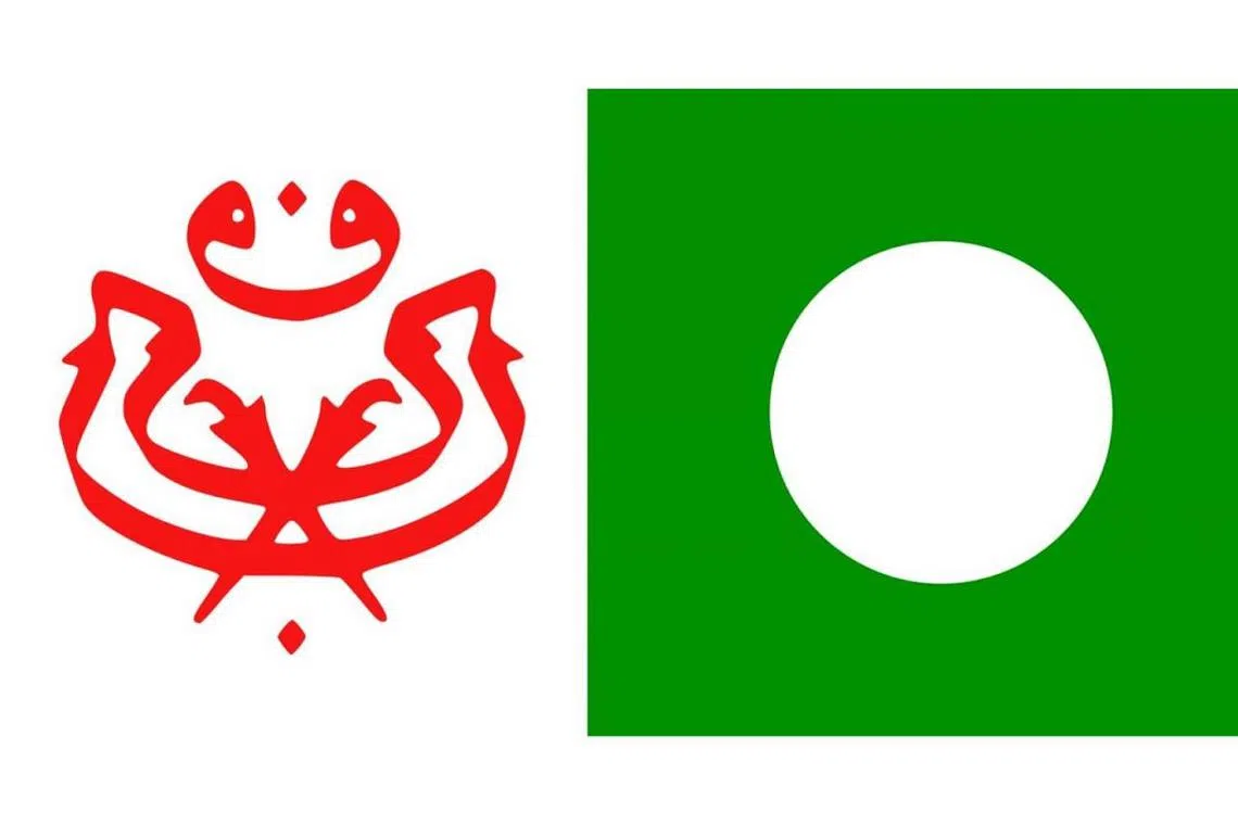 DAFTAR PARTI: Parti Umno dan Pas (logo masing-masing di kiri dan kanan) bersetuju mendaftar Muafakat Nasional secara rasmi dengan Jabatan Pendaftar Pertubuhan (ROS). - Foto INTERNET -