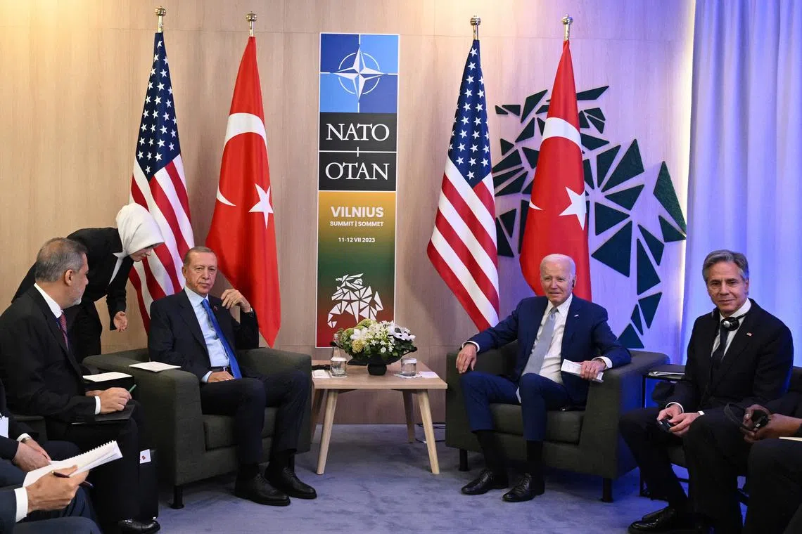 Encik Biden bercakap dengan Encik Erdogan dari pesawat Air Force One selama hampir sejam pada Ahad dalam usaha memecahkan kebuntuan dan mengelakkan kegagalan yang memalukan di sidang puncak Vilnius. Encik Erdogan secara tiba-tiba menggugurkan penentangannya pada malam Isnin sebelum pertemuan Nato itu.