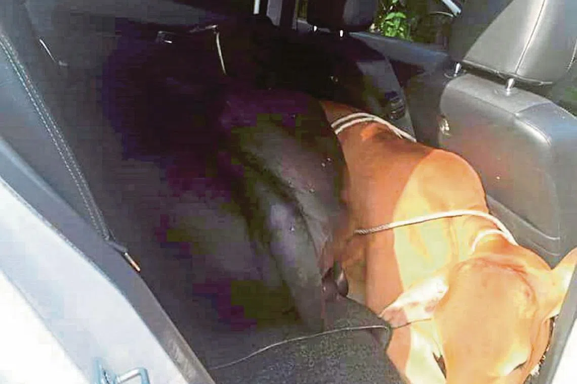 Kejadian disedari orang ramai yang melalui lokasi kejadian pada jam 8 pagi apabila mendapati kenderaan itu tersadai di tepi jalan. Ketika membuat pemeriksaan, orang ramai terkejut apabila mendapati dua lembu dalam kereta berkenaan," kata sumber itu di sini, semalam.