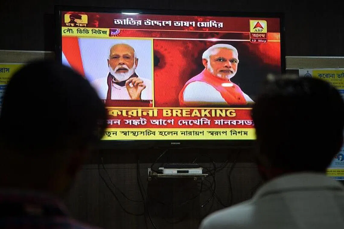 NEW DELHI: Perdana Menteri India, Encik Narendra Modi, semalam mengumumkan India akan memberikan 20 trilion rupee ($376.8 bilion) dalam bentuk fiskal dan langkah kewangan untuk menyokong ekonomi teruk terjejas akibat perintah berkurung selama beberapa minggu bagi membendung penularan koronavirus.