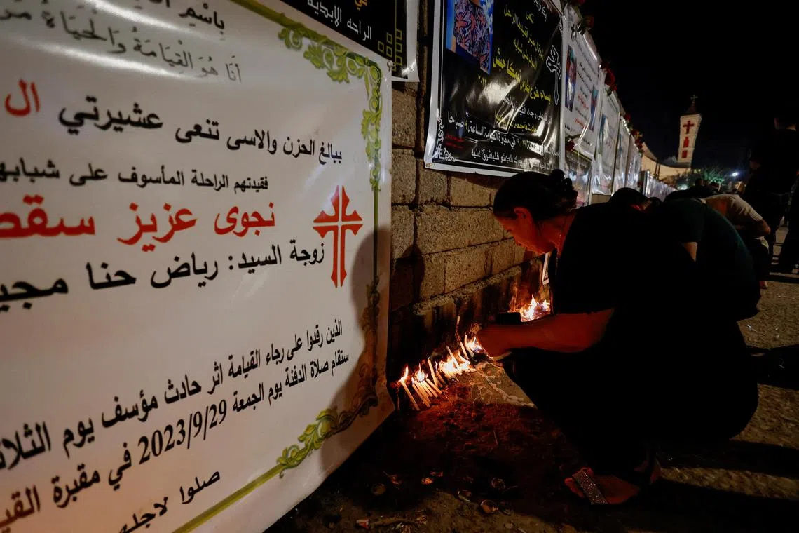 Seruan pertanggungjawaban kian meningkat diluahkan oleh para anggota dan pengunjung yang berduka di upacara pengebumian dan peringatan yang penuh sesak di gereja Al-Tahira di Hamdaniya.