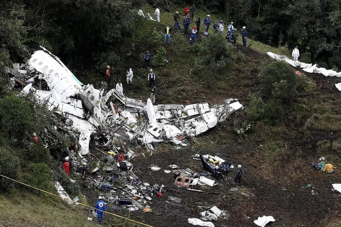 LA UNION (Colombia): Dunia bola sepak berkabung semalam selepas tragedi sebuah pesawat terhempas di pergunungan Colombia kelmarin - yang turut membawa satu pasukan bola sepak dari Brazil - dengan mengorbankan 71 orang, namun enam terselamat.