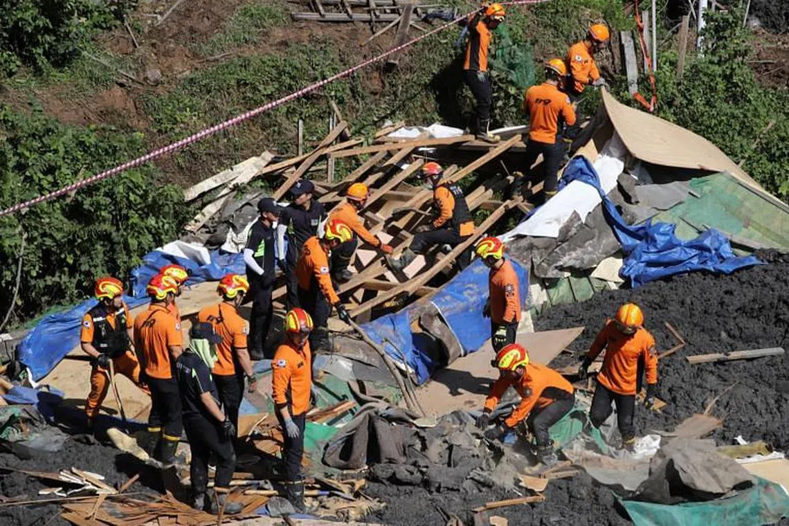 Di bandar pelabuhan daerah selatan Busan - salah satu kawasan yang teruk dilanda bencana ini - sekitar 600 penyelamat sedang mencari empat orang yang dipercayai terperangkap di bawah tanah runtuh.