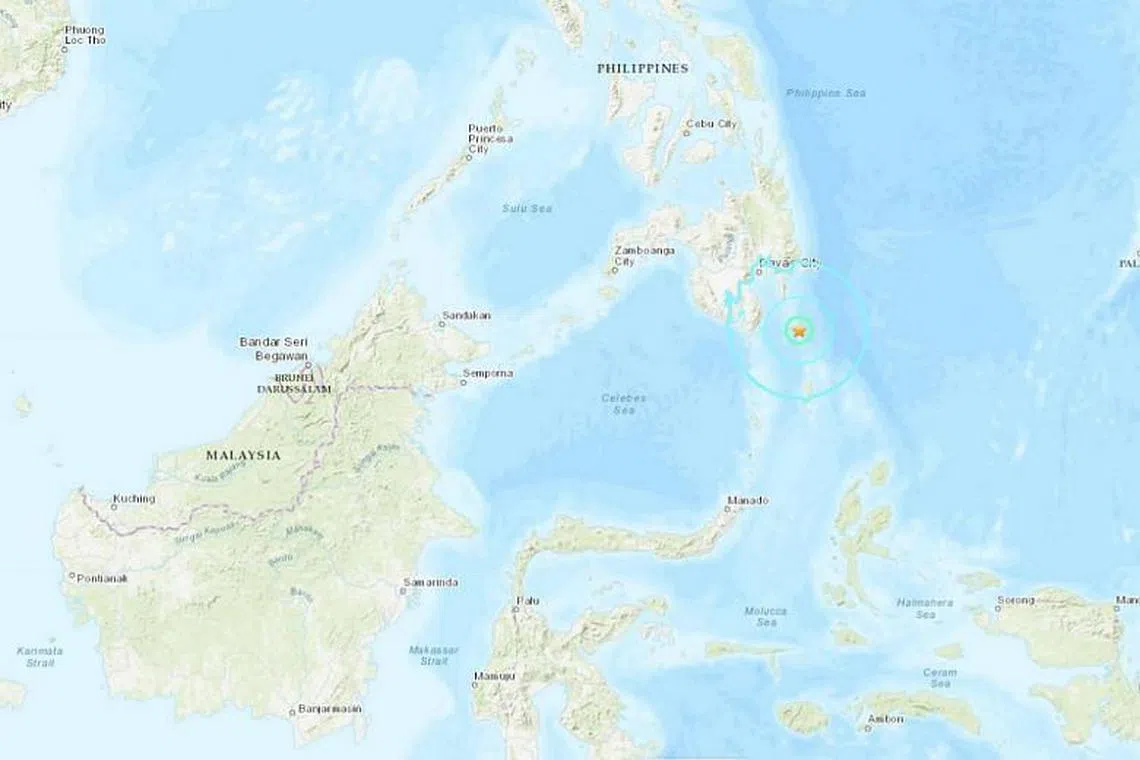 Gempa bumi berlaku di wilayah Davao Occidental di selatan Filipina pada 10.02 pagi waktu tempatan pagi tadi. - Foto USGS -