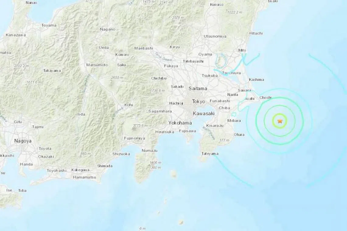 Gegaran dirasakan di kawasan Tokyo yang lebih besar. - USGS