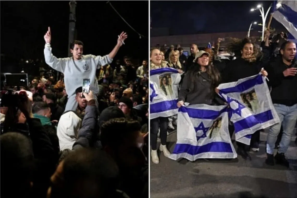 Tiga tebusan wanita Israel yang dibebaskan pada 19 Januari di Gaza disatukan semula dengan keluarga mereka manakala sorakan, nyanyian dan bunyi hon kereta mengiringi dua bas yang membawa tahanan Palestin yang dibebaskan dari penjara Israel pada 20 Januari, memeriahkan suasana di bandar Beitunia, Tebing Barat, yang diduduki.