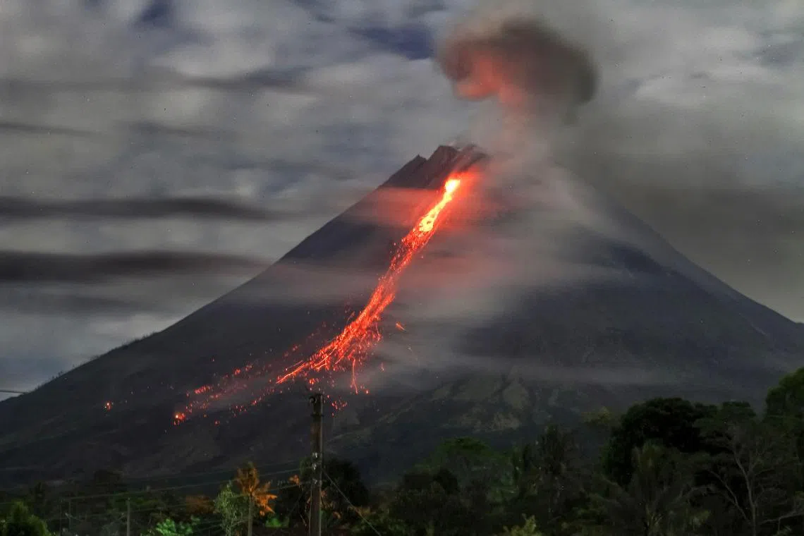 JAKARTA: Gunung Merapi di Indonesia, salah satu gunung berapi paling aktif di dunia, meletus pada Selasa, memuntahkan lahar lebih dua kilometer daripada kawah.