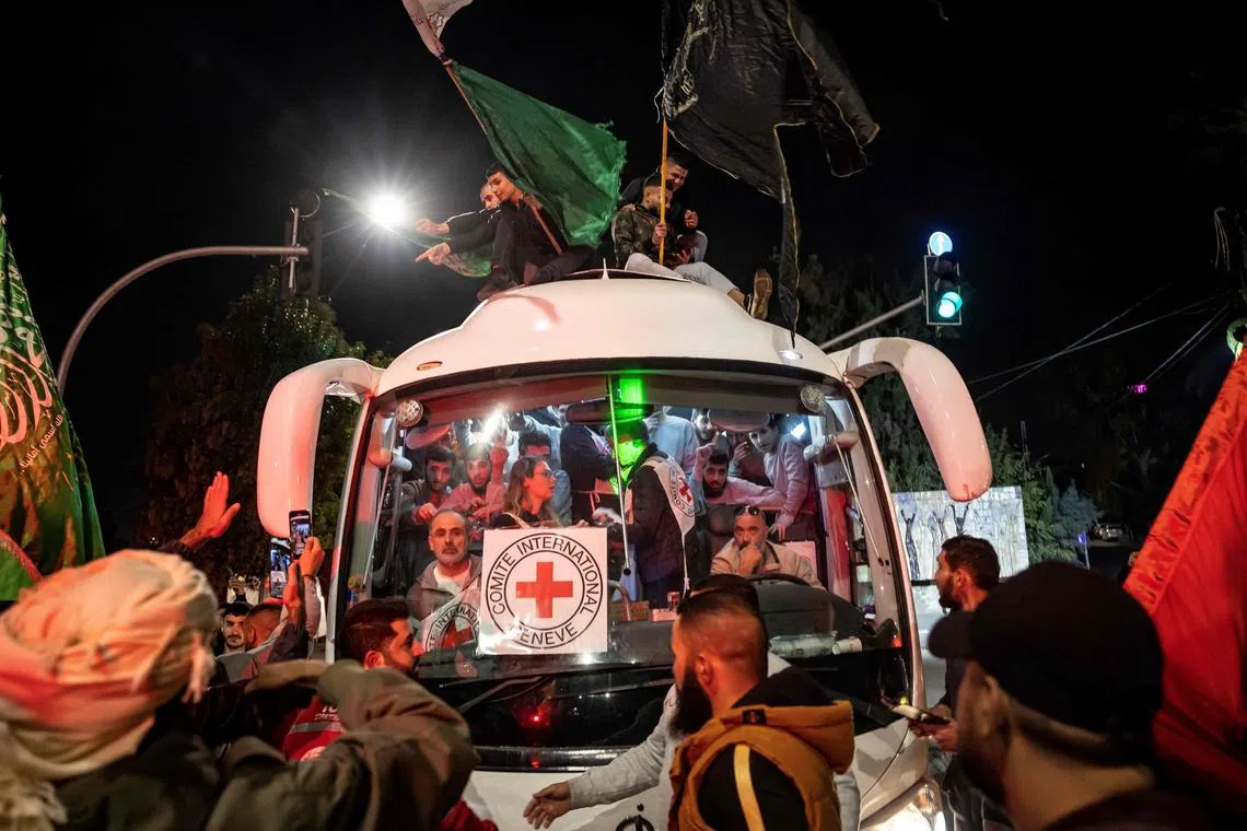 DEIR AL-BALAH (Gaza): Gencatan senjata empat hari yang rapuh antara Israel dengan Hamas kembali ke landasannya pada Ahad apabila kumpulan militan membebaskan 17 lagi tebusan, termasuk 14 warga Israel dan warga Amerika Syarikat pertama, dalam pertukaran ketiga dalam tempoh empat hari.