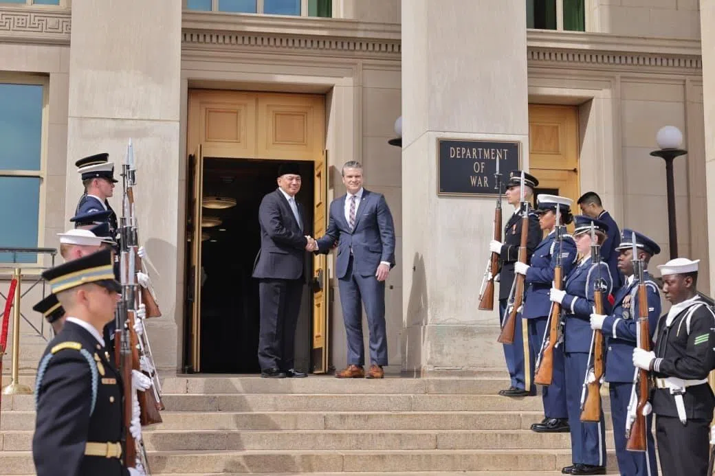 Menteri Pertahanan Indonesia, Encik Sjafrie Sjamsoeddin (tengah, kiri), bertemu Setiausaha Pertahanan Amerika Syarikat, Encik Pete Hegseth, di Pentagon, Washington, bagi memperkukuh kerjasama pertahanan antara kedua-dua negara. - Foto KEMENTERIAN PERTAHANAN INDONESIA