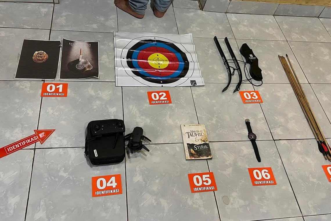 Dalam serbuan di rumah salah seorang suspek, pihak berkuasa menemui busur dan anak panah, dron serta risalah ISIS.