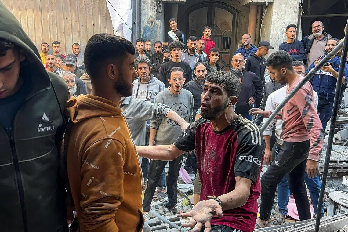Penduduk Palestin berkumpul di lokasi serangan udara Israel yang mengena sebuah rumah di kawasan Shejaia, Bandar Gaza pada 10 April 2025. - Foto REUTERS