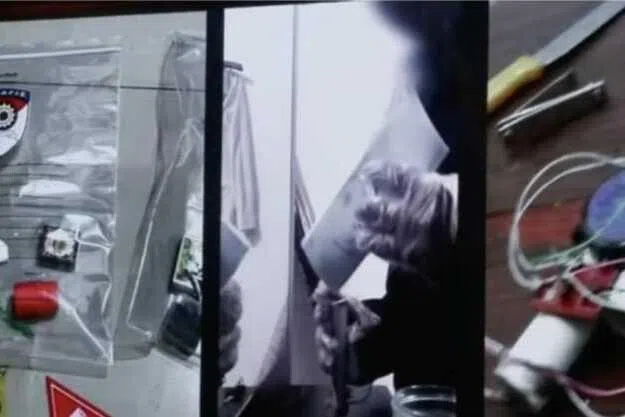 Ia melibatkan proses memasukkan serbuk hitam ke dalam sebatang paip sambil memakai sarung tangan plastik.