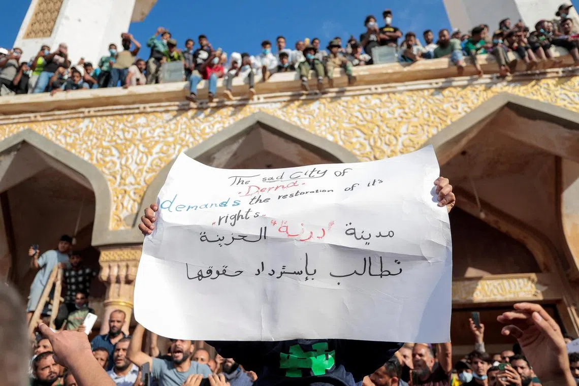 Pada Isnin, penunjuk perasaan di Derna melaungkan slogan marah terhadap Parlimen di timur Libya dan ketuanya, Encik Aguila Saleh.