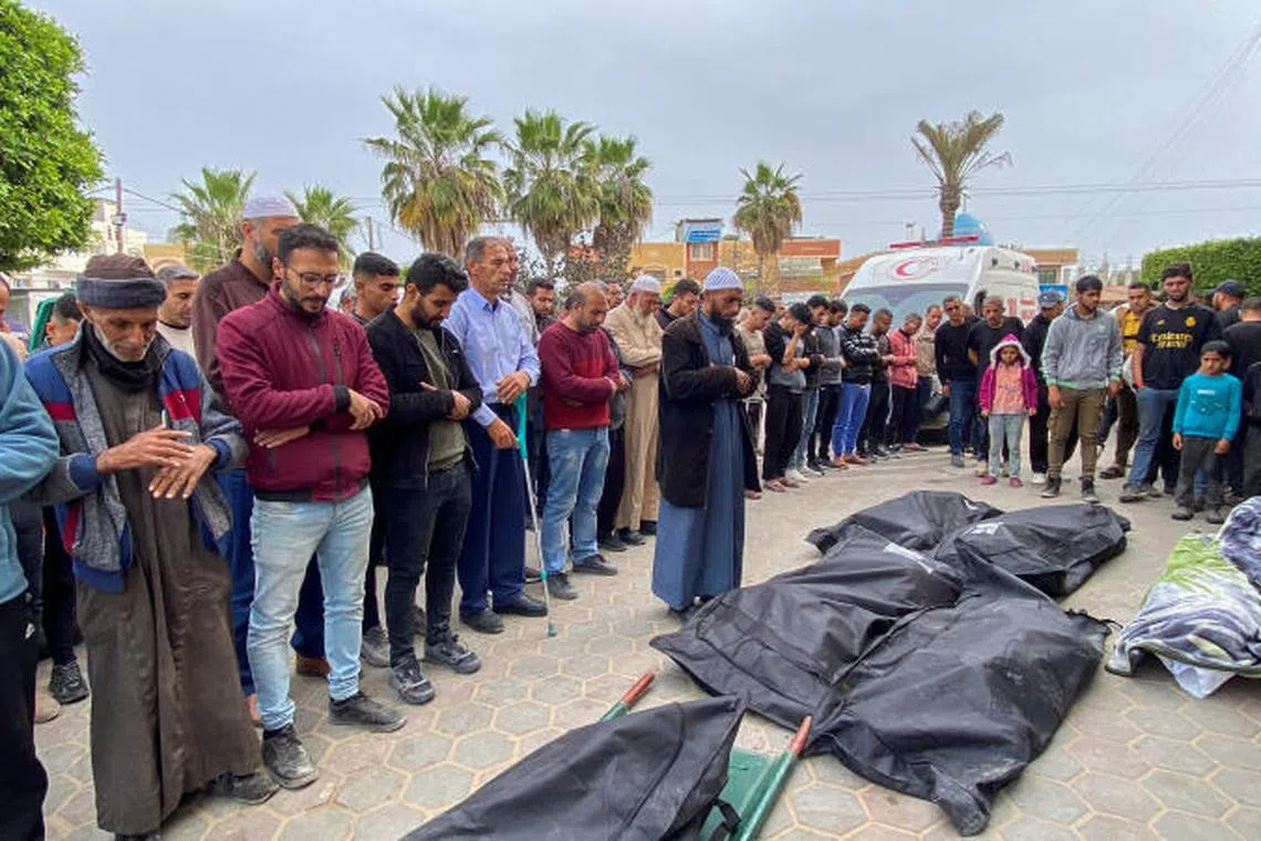 Antaranya ialah 12 orang yang disyaki sekeluarga terbunuh di rumah mereka di bandar selatan Rafah, yang dibom berulang kali menjelang operasi darat yang diancam Israel.