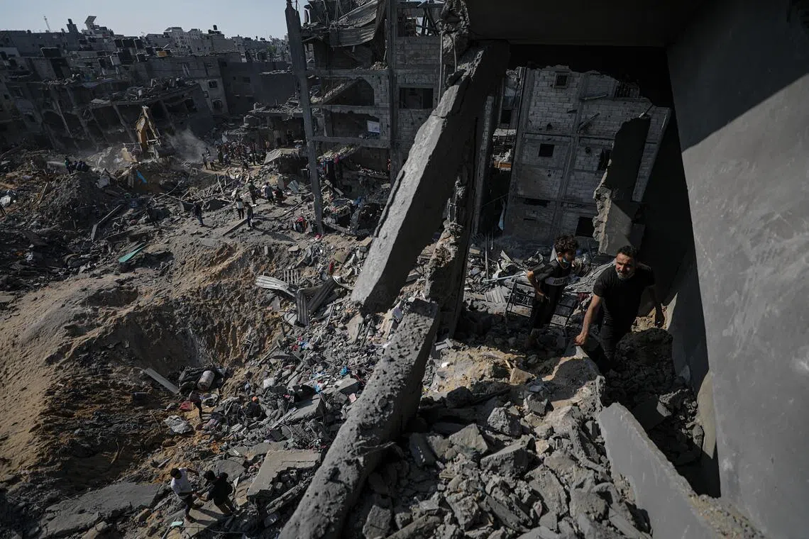 Selepas pengeboman terbaru ke atas Jabalia, kem pelarian terbesar di Gaza, rakyat Palestin dilihat menyaring runtuhan dalam usaha mencari mangsa yang cedera dan terbunuh.