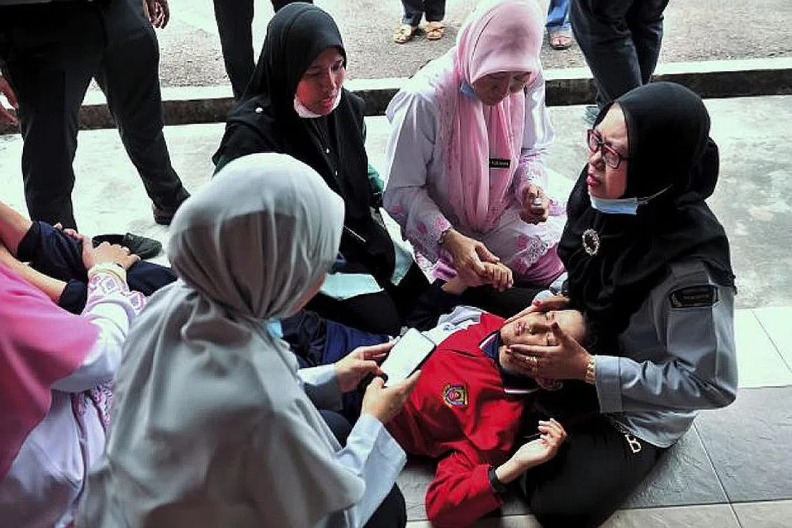 JADI MANGSA: Seorang pelajar sedang dirawat kerana masalah pernafasan setelah bahan kimia dihumban secara haram di Sungai Kim Kim di Pasir Gudang, Johor. - Foto THE STAR -