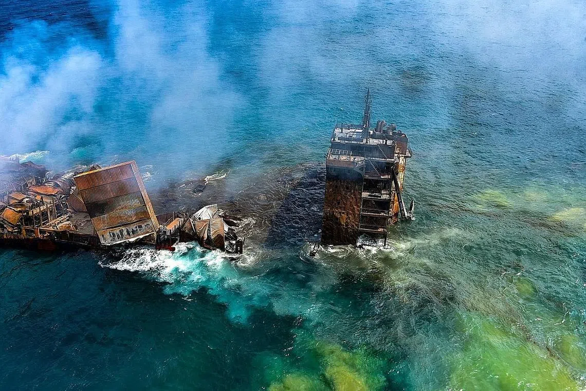 "Kapal pengiring X-Press... dapat mengesahkan bahawa bahagian belakang kapal berada di dasar laut pada kedalaman kira-kira 21 meter dan bahagian depan akan tenggelam perlahan-lahan," kata syarikat itu dalam satu kenyataan, kelmarin. - BHM, AFP