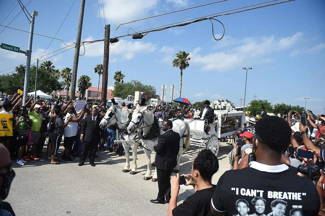 HOUSTON: Mendiang George Floyd, penduduk kulit hitam Amerika Syarikat yang kematiannya dalam tahanan polis membangkitkan tunjuk perasaan di seluruh negara itu terhadap perkauman, dipuji sebagai "gergasi lembut" dan simbol perjuangan golongan tertindas untuk menuntut keadilan, semasa pengebumian di tempat kediamannya di Houston kelmarin.