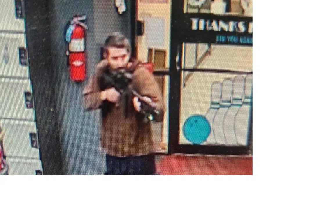 Card dilihat dalam rakaman pengawasan mengacukan senapang separa automatik ketika dia masuk ke gelanggang boling Just-in-Time pada Rabu. – Agensi Berita.
