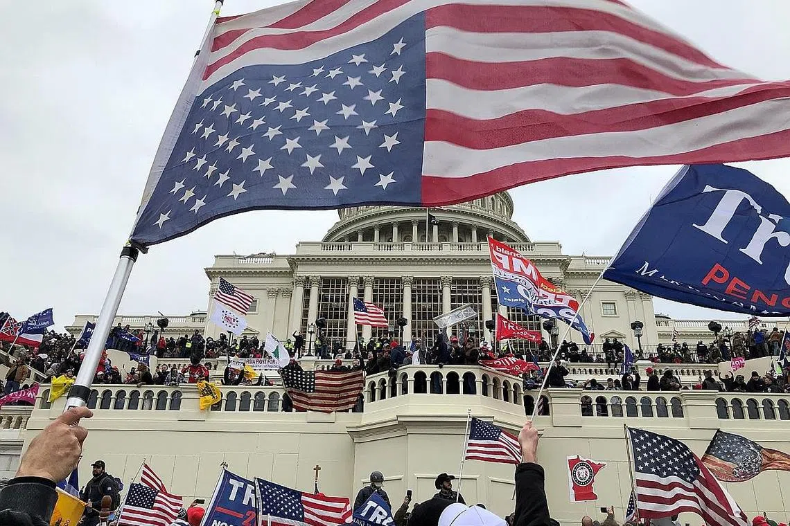 Ratusan perusuh merempuh Bangunan Capitol sekitar 2 petang kelmarin - 3 pagi waktu Singapura, semalam - setelah Parti Demokrat memenangi dua kerusi Senat di Georgia untuk menguasai semula Kongres.