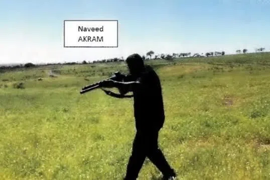 Polis mendakwa dia melakukan penembakan beramai-ramai bersama bapanya Sajid, 50 tahun, yang ditembak mati di tempat kejadian.
