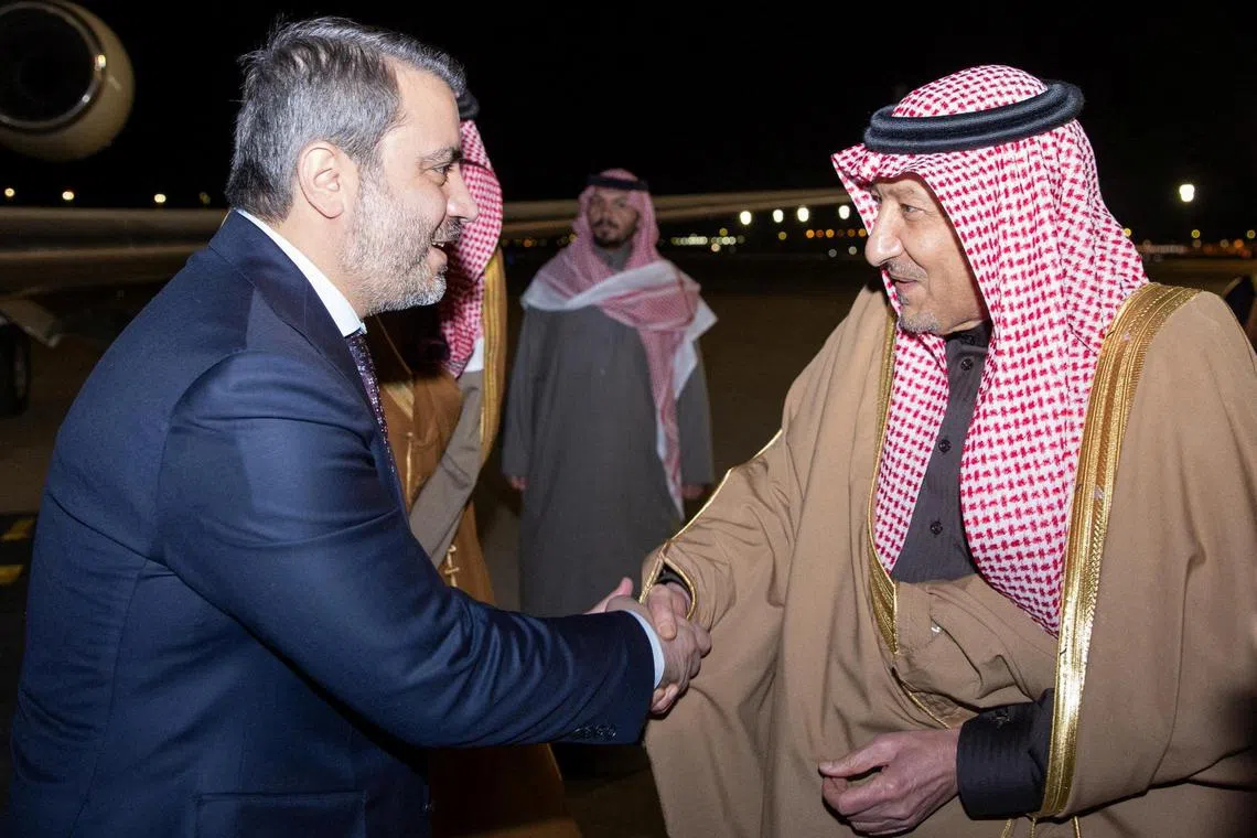 “Saya baru sahaja tiba di Arab Saudi yang bersaudara, bersama Menteri Pertahanan Murhaf Abu Qasra dan Ketua Perkhidmatan Perisikan Umum Anas Khattab,” kata Encik Shibani dalam kenyataan di platform X.