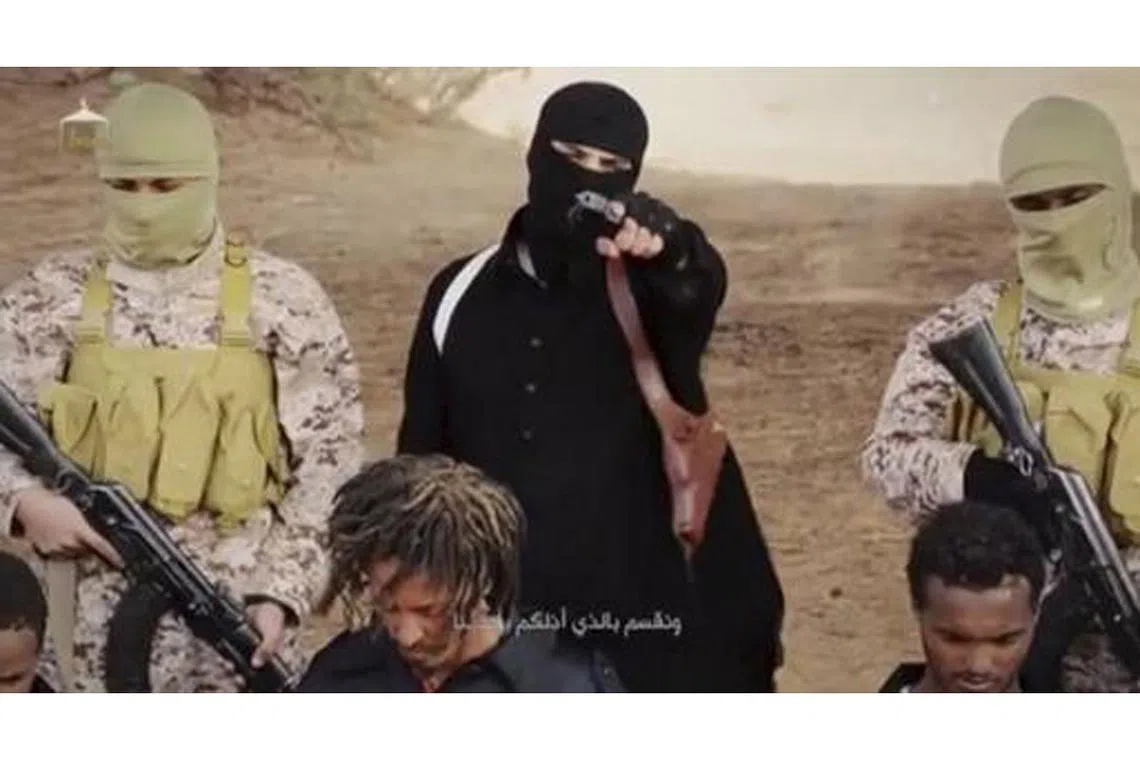 PENGGANAS: Militan IS berdiri di belakang sebahagian daripada 30 penganut Kristian Habsyah di Wilayat Fazzan, Libya, yang dikatakan dipancung mereka pada April 2015. Muslim yang mengikuti ajaran salaf tidak melakukan pengganasan sembarangan. - Foto REUTERS -