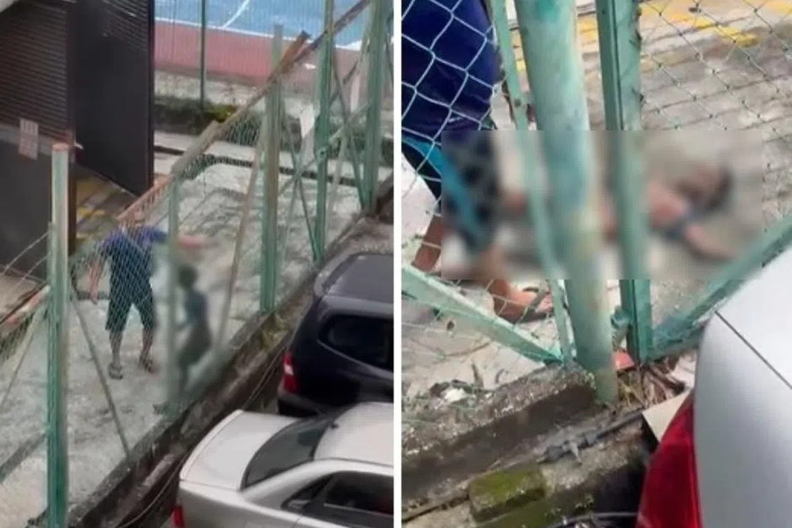 Budak itu kemudian bersandar di pagar tersebut dengan seorang lelaki dewasa kelihatan mendekatinya untuk menghulurkan bantuan.