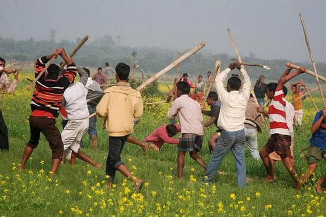 MEMBERONTAK: Aktivis Parti Jamaat-e-Islami Bangladesh dan Parti Nasionalis Bangladesh (BNP) bertempur dengan aktivis Liga Awami di Rajshahi pada hari mengundi kelmarin. Liga Awami menang besar dalam pilihan raya yang diboikot pihak pembangkang, dan merupakan pilihan raya yang berdarah sehingga mengorbankan sekurang-kurangnya 26 orang, dan menyaksikan hanya segelintir rakyat keluar mengundi. - Foto REUTERS -