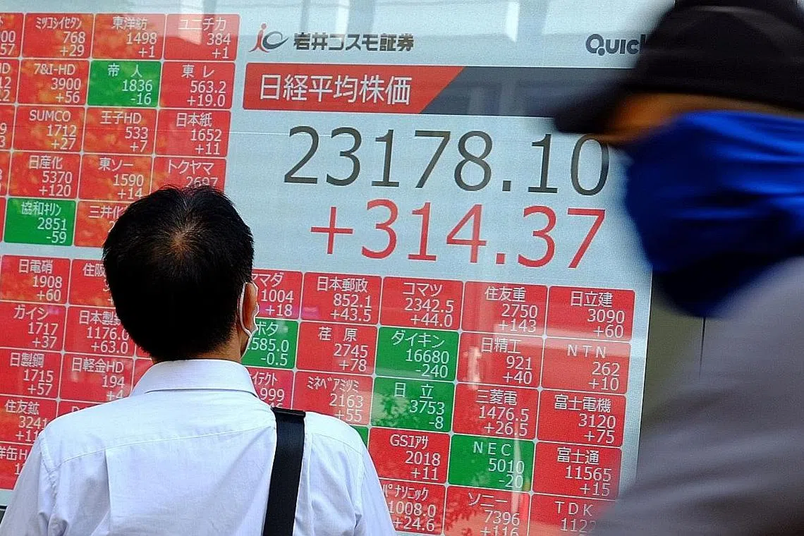 MEROSOT: Seorang pejalan kaki sedang melihat prestasi saham di Bursa Saham Tokyo yang merosot ekoran penjualan besar-besaran kebanyakan syarikat. - Foto AFP -