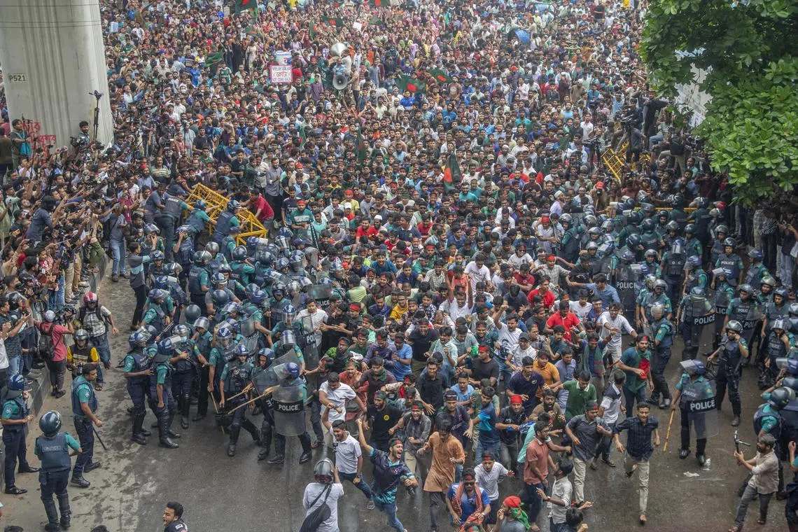 Bantahan bertukar menjadi ganas sejak awal minggu ini apabila ribuan penunjuk perasaan antikuota bertempur dengan anggota sayap pelajar parti pemerintah, Liga Awami, di seluruh negara.