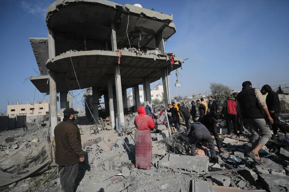 MASIH BERGOLAK: Para penduduk Palestin berusaha mencari mereka yang terselamat selepas pengeboman Israel di kawasan sekitar kem pelarian Khan Younis, selatan Gaza, pada 31 Disember.