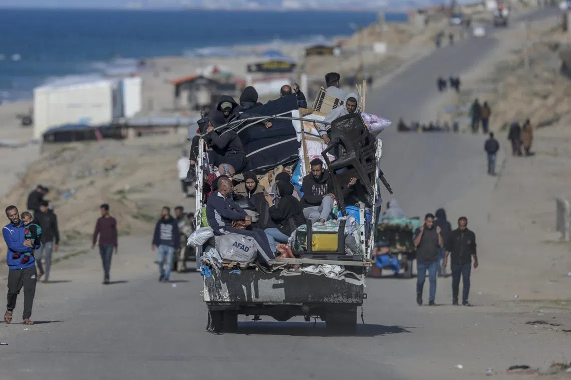 BAITULMAKDIS: Beratus-ratus penduduk Palestin meninggalkan salah satu hospital terakhir yang masih berfungsi di Jaluran Gaza pada 14 Februari, selepas tentera Israel mengarahkan mereka keluar dan mengancam tindakan lanjut untuk menghentikan kegiatan Hamas di situ.