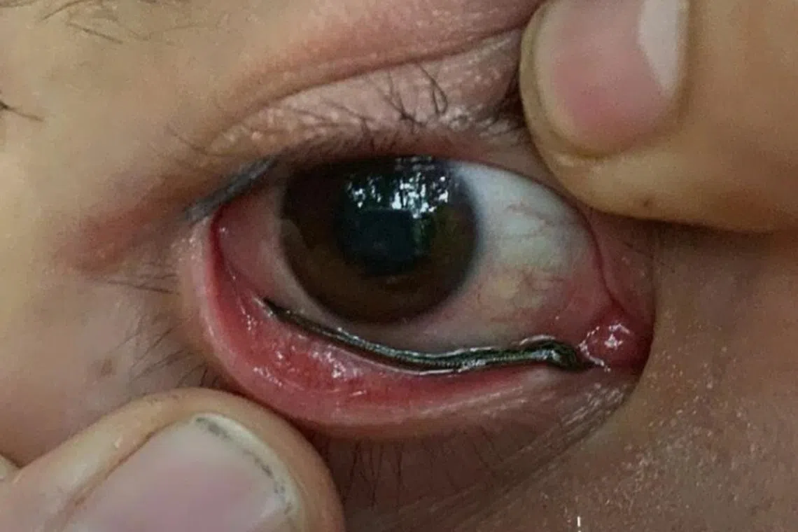 “Hari ini, saya akan mengongsi pengalaman peribadi saya yang mungkin berlaku hanya sekali dalam 10,000 kali, atau mungkin sekali dalam 100,000 kali: seekor lintah yang tersendat dalam mata,” kata Encik Apichart.