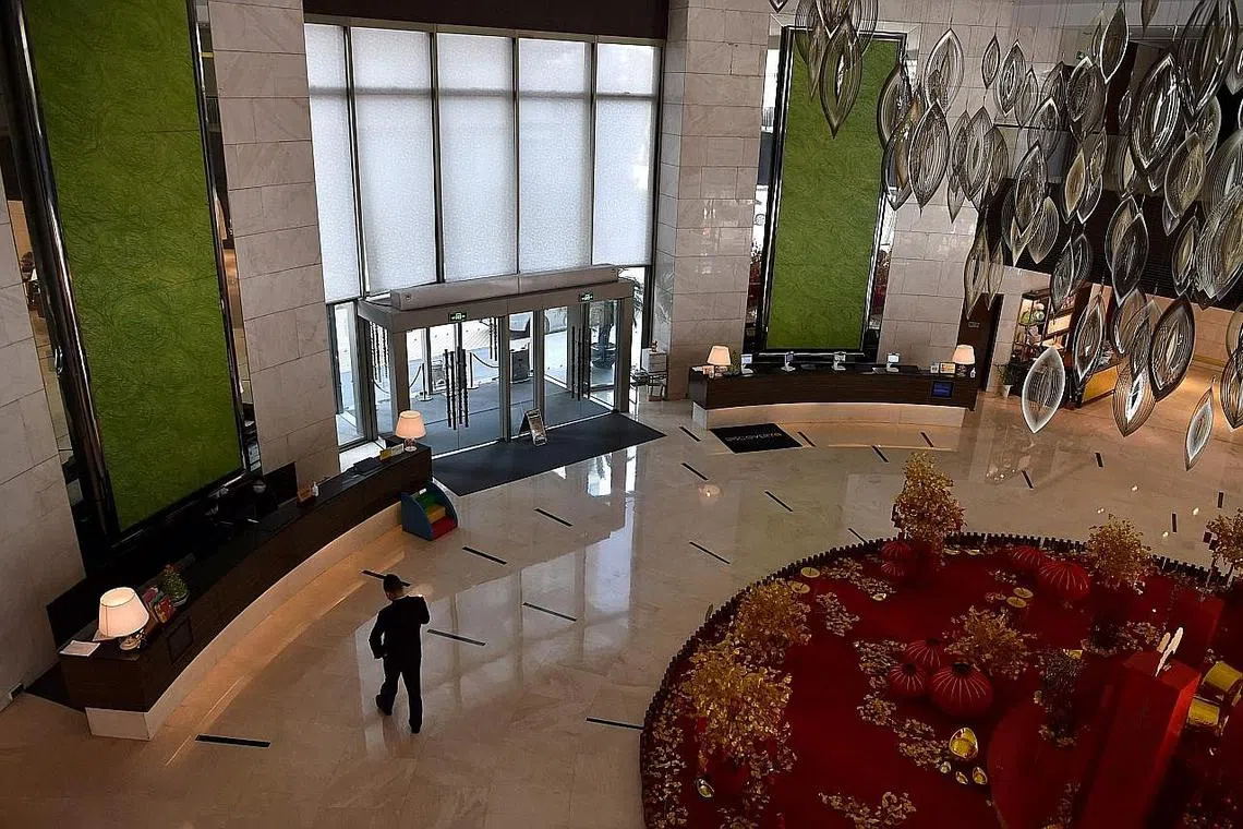 LENGANG: Sebuah lobi hotel di bandar Wuhan di wilayah Hubei lengang sedang pengunjung menjauhi bandar itu selepas berlakunya penularan virus di situ. - Foto AFP -