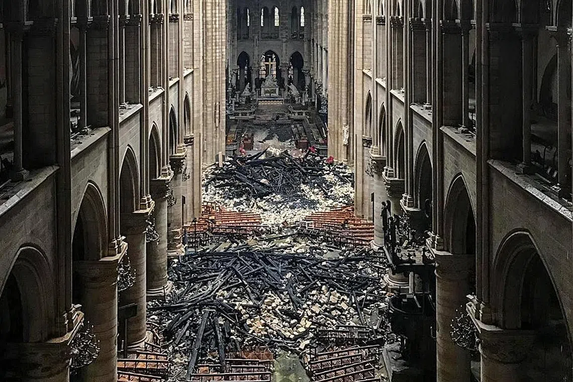 Presiden Perancis, Encik Emmanuel Macron, semalam berikrar akan membina semula Notre-Dame, ikon dunia berusia 850 tahun, "dalam masa lima tahun".