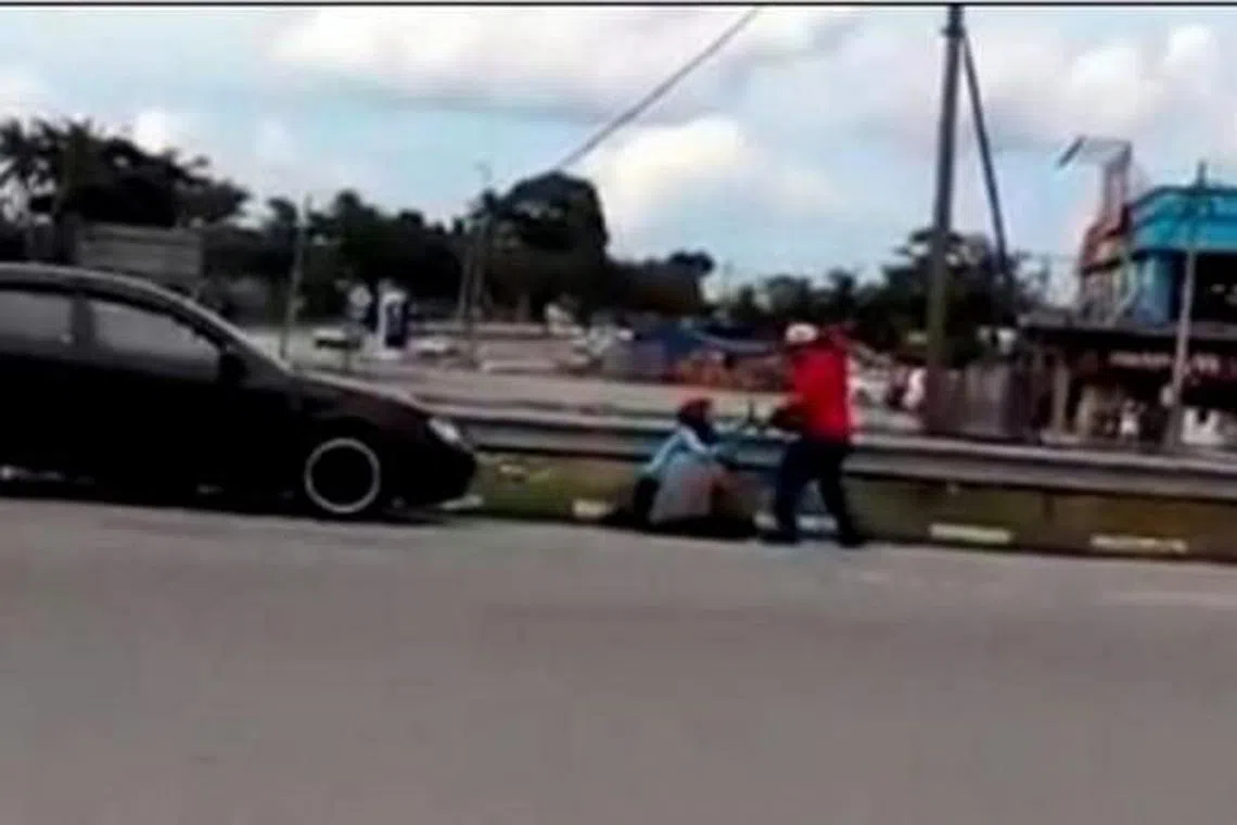 BATU PAHAT: Polis telah menahan seorang lelaki yang memukul isterinya menggunakan kasut di tepi jalan dekat pintu masuk Plaza Tol Ayer Hitam.