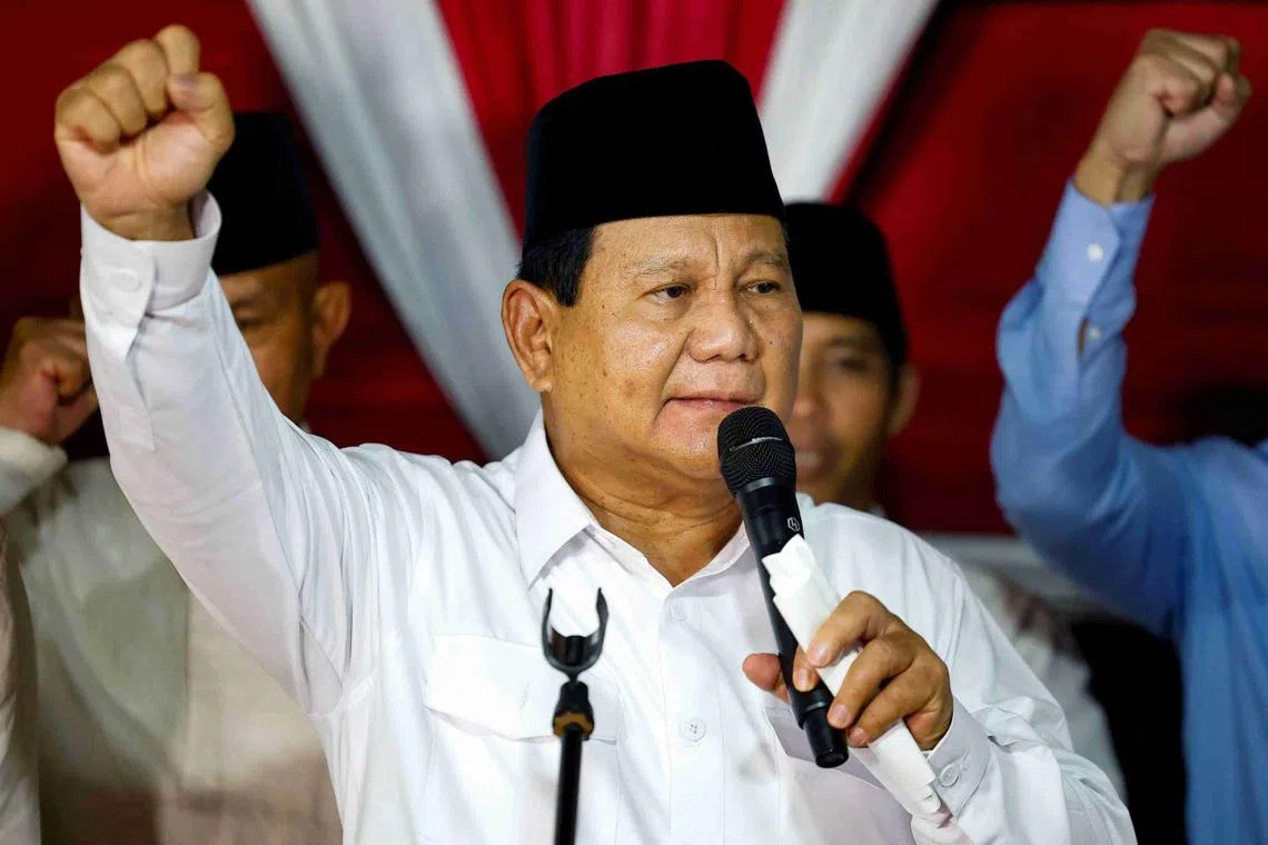 Menurut pengiraan akhir Suruhanjaya Pilihan Raya Umum (KPU), Encik Prabowo dan pasangannya, Encik Gibran Rakabuming Raka, yang merupakan anak sulung Presiden Joko ‘Jokowi’ Widodo, memenangi perebutan jawatan presiden selepas memperoleh 96.2 juta undi, atau 58.6 peratus daripada undi yang sah.