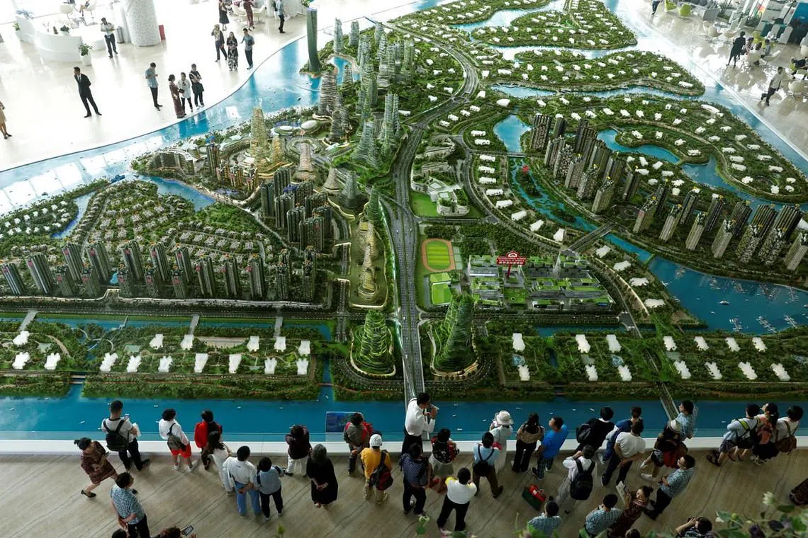 TIMBUL PERCANGGAHAN?: Bakal pembeli melihat model pembangunan Country Garden Forest City Johor Bahru di bilik pameran tahun lalu. - Foto REUTERS -